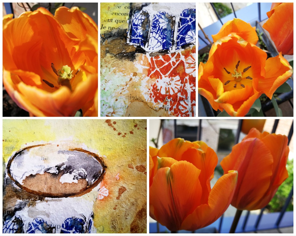 ..commencer un nouveau calepin en regardant les tulipes de notre terrasse, tulipes «Princesse Irène», si, si..sourire