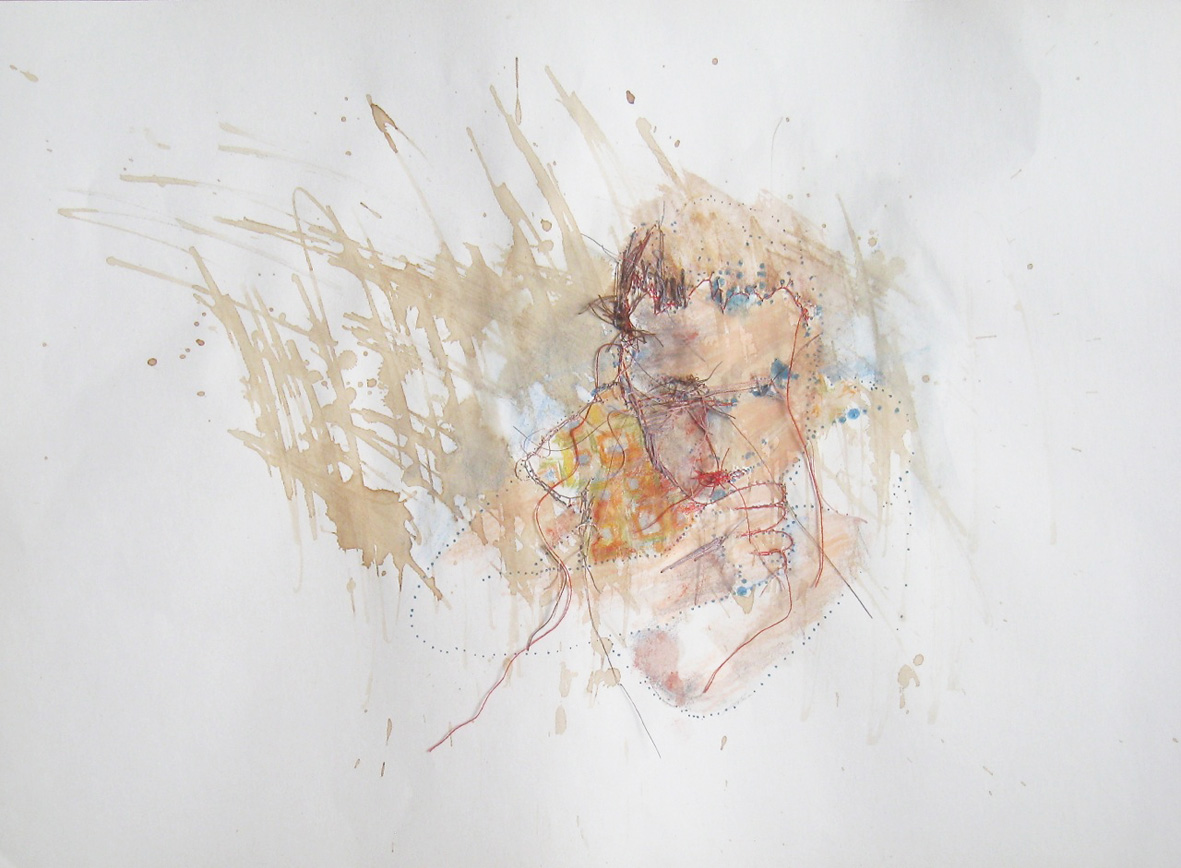 (crayon-aquarelle, acryl et fil sur papier 29, 5 x 41 cm, 2015)